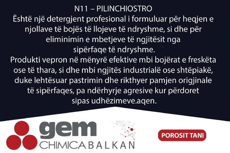 👉 Gjeni N11 – Pilinchiostro në Panairi Online dhe zgjidhni në mënyrë efektive problemet e njollave të bojës dhe ngjitësit me një solucion profesional të besueshëm.